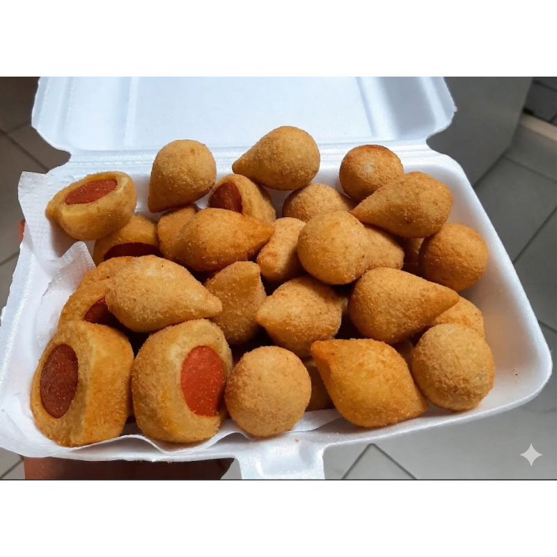 Esse kit contém 25 salgados de 15g fritos na hora.